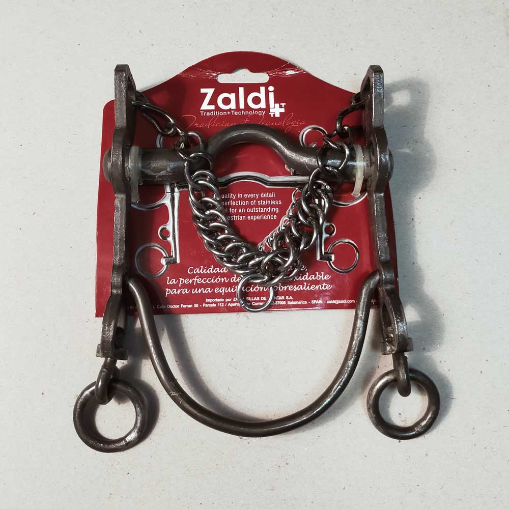 Limpiar después de cada uso con agua tibia y un paño suave para eliminar restos de saliva y suciedad. El acero inoxidable facilita el mantenimiento, pero es importante secar completamente para preservar el acabado bitono envejecido. Revisar periódicamente la articulación de la embocadura movible para asegurar que se mueve libremente sin trabas ni desgaste excesivo. Inspeccionar la barbada y los alacranes regularmente para detectar signos de desgaste o debilitamiento. Almacenar en lugar seco, preferiblemente colgado para evitar deformaciones. No usar productos abrasivos o cepillos metálicos que puedan dañar el acabado especial bitono.